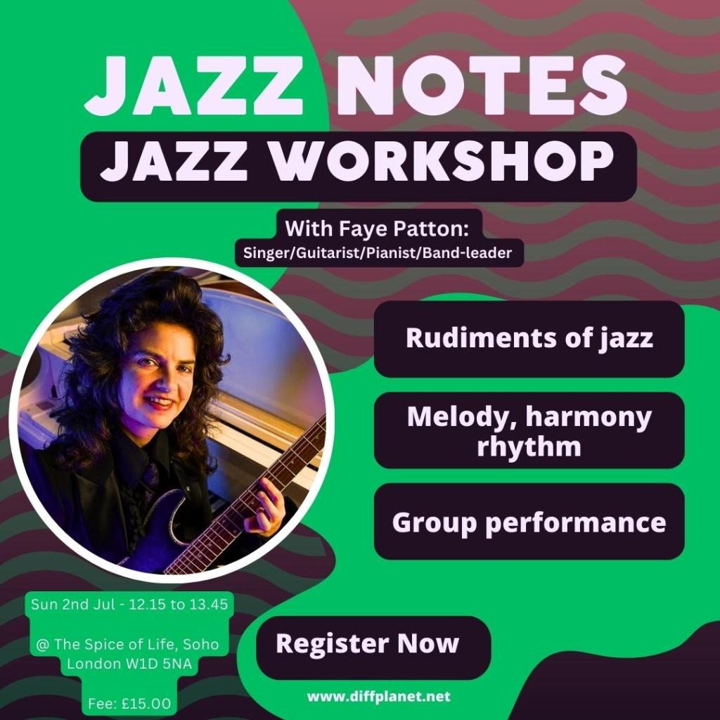 Sun 2nd Jul – 12.15 – 13.45pm – £15 (advance booking required) Book here now! https://www.eventbrite.co.uk/e/jazz-notes-jazz-workshop-the-spice-of-lfie-soho-tickets-637692915677?aff-oddtdcreator=